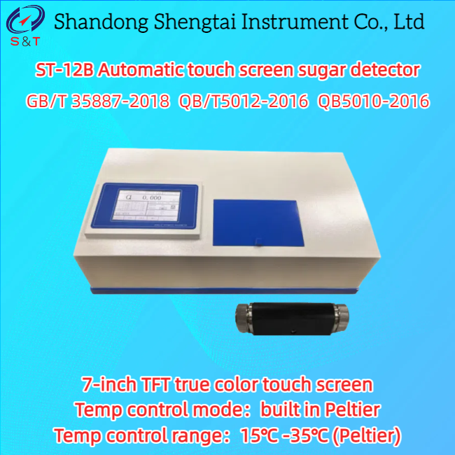 Автоматический сахариметр с сенсорным экраном ST-12B - это прибор для измерения оптического вращения веществ. Концентрацию, чистоту, содержание сахара или содержание образца можно определить, измерив оптическое вращение образца. Он широко используется в сахарной, фармацевтической, нефтяной, пищевой, химической и других отраслях промышленности, а также в соответствующих колледжах, университетах и научно-исследовательских институтах и соответствует методу испытаний белого гранулированного сахара GB/T 35887-2018, методу испытаний белого сахара QB/T 5012-2016 и методу испытаний леденцового сахара QB5010-2016.