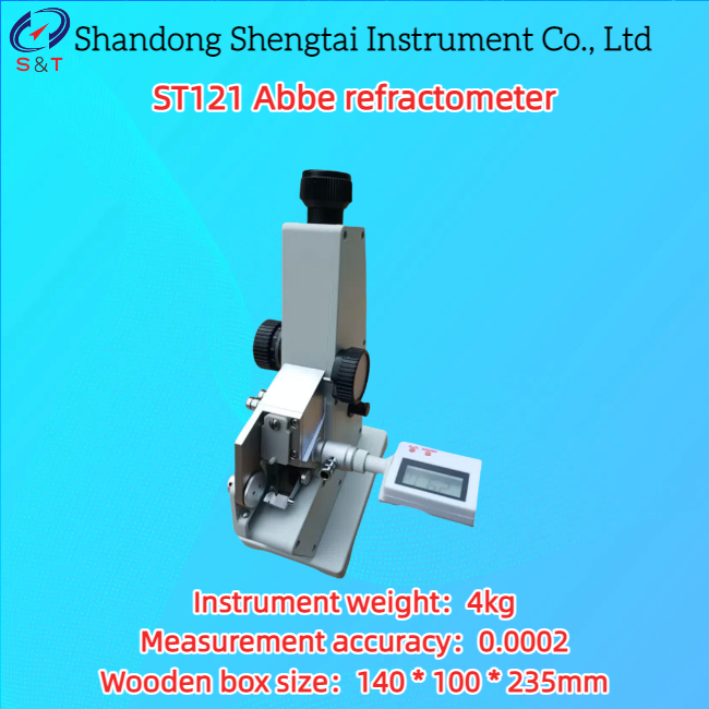 The ST121 Abbe refractometer is an instrument capable of measuring the refractive index ND and average dispersion NF-NC of transparent, semi transparent liquids or solids. If a thermostat is connected to the instrument, the refractive index ND can be measured within the temperature range of 0℃ ~ 0℃, and the percentage of sugar concentration in the sugar solution can be measured from 0-95% (equivalent to a refractive index of 1.333-1.531).