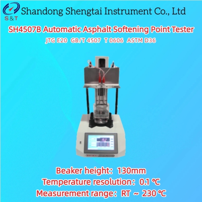 The SH4507B automatic asphalt softening point tester is designed and manufactured in accordance with the requirements specified in the industry standards JTG E20 "Test Code for Asphalt and Asphalt Mixtures in Highway Engineering" (T 0606 "Asphalt Softening Point Test (Global Method)" and GB/T 4507 "Determination of Softening Point of Petroleum Asphalt" of the People's Republic of China.