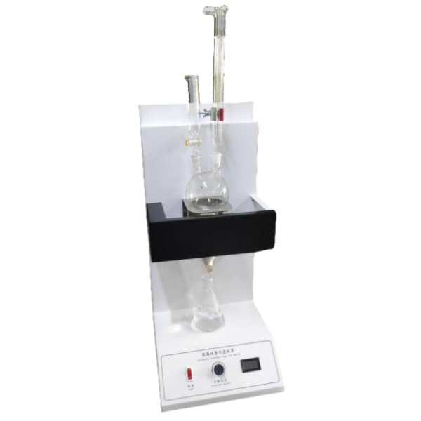 Прибор состоит в основном из колбы-экстрактора (экстрактора), нагревательной катушки, защитной крышки, конденсатора, цилиндрической сепарационной воронки (капельной воронки), зажимательного устройства,панель регулируемой температуры с цифровым дисплеем, опоры столба, столб, двойной верхний провод, универсальный зажим, коническая колба и т. д. Структура показана на рисунке слева: