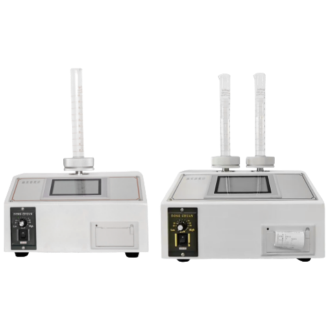 Working principle: The vibrating density tester fixes the powder measuring cylinder on a mechanical vibration device, and the vibration motor drives the mechanical vibration device to vibrate up and down. The scale test tube containing powder vibrates rhythmically with the mechanical vibration device. As the number of vibrations increases, the powder in the measuring cylinder gradually compacts. After the set number of vibrations, the mechanical vibration device stops vibrating and reads the volume of the scale test tube. According to the definition of density: mass divided by volume, the density of the compacted powder is calculated.